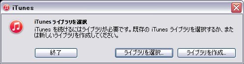 まずは、旧iPod側のライブラリでiTunesを起動します。iTunes起動時にShiftキーを押したままにすると、以下のようなライブラリの選択ダイアログが表示されます。旧iPodで使用していたライブラリを選択して起動します。