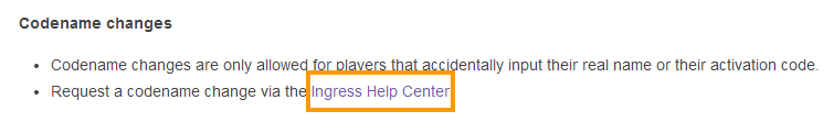 コードネームの変更は、以下のIngress Helpページから行えます。