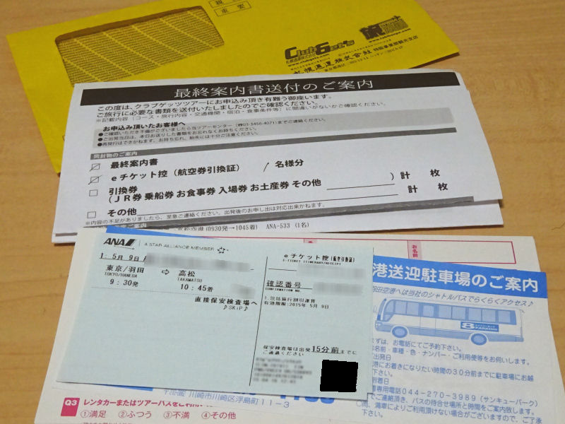 先日、ようやく飛行機のeチケットなどが届きました。今回はANAなので、比較的わかりづらさなどはないと思います。