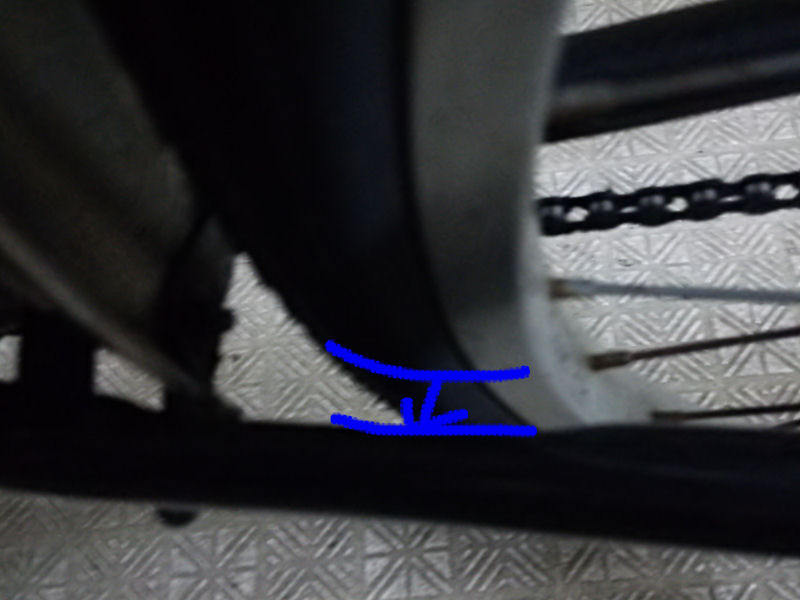 どうやら、後輪の軸がゆがんでタイヤがフレームに当たってしまっていたようです。