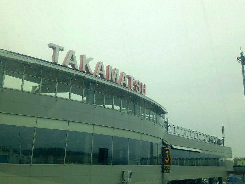 ほぼ定刻通り10:45に高松空港に到着しました。前日の予報では晴れ。朝の予報でも、午前中のうちに雨が上がるはずでしたが、まだ現地は雨模様でした。