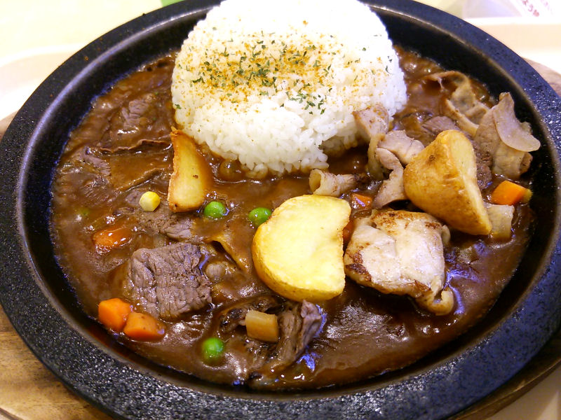 鉄板でじゅうじゅう焼かれた肉にカレーが乗っていてアツアツです。結構、熱くて食べるのが大変でした。
