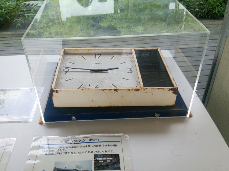 さらに、道路情報コーナーにも展示品が、小学校の時計です。地震のあった14時46分で停止しています。