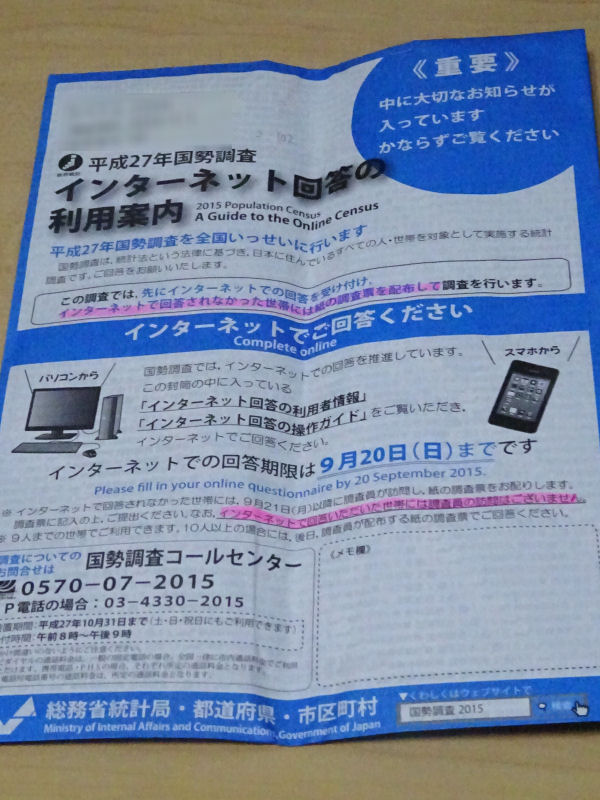 国勢調査2020もインターネット回答であっという間に終わりました。 -