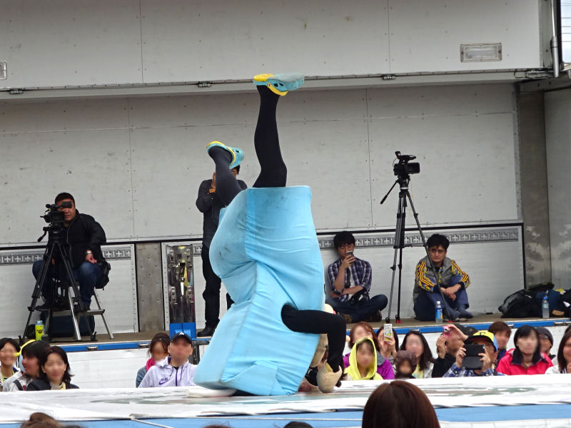 ちょうせい豆乳くん、お得意なのか1点倒立。そうこうしてる間に次の試合の入場が始まってしまいました。