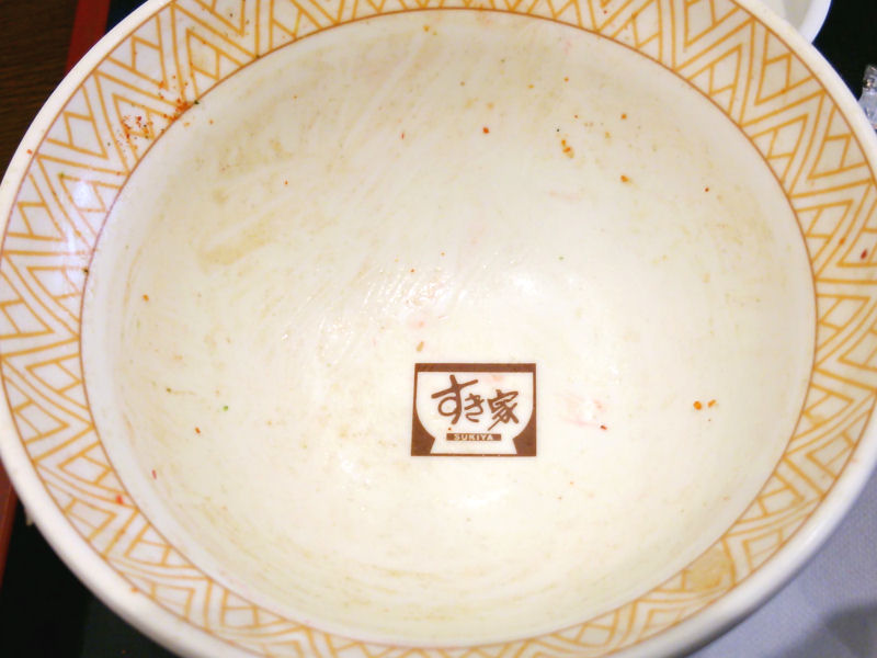残りわずかです。案の定、キャベツはほとんどなくなってしまって、最後は普通の牛丼大盛りになってしまっていました。