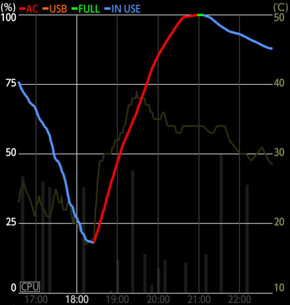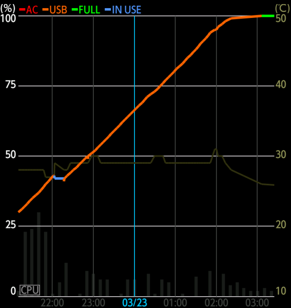 これをUSBケーブルだけを交換して充電した場合はこうなります。