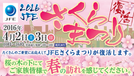 なでしこリーグ観戦の帰りに、JFEさくらまつり2016に寄ってみました。普段は入れない、JFEスチール研究所の敷地内に入る事がで花見ができるとのことでした。