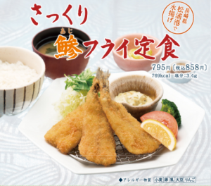 土曜日(4/23)のお昼ごはんは大戸屋で期間限定の「さっくり鯵フライ定食」を食べてみました。サクサクの衣の鯵フライが美味しかったです。