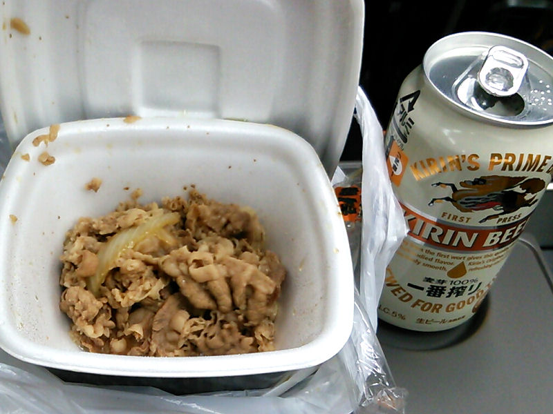 水戸駅に着いたのが20時頃という事で、いまいち買えるものも選択肢があまりなく。帰りの電車では、吉牛で牛皿弁当をかってつまみにしましたよ。