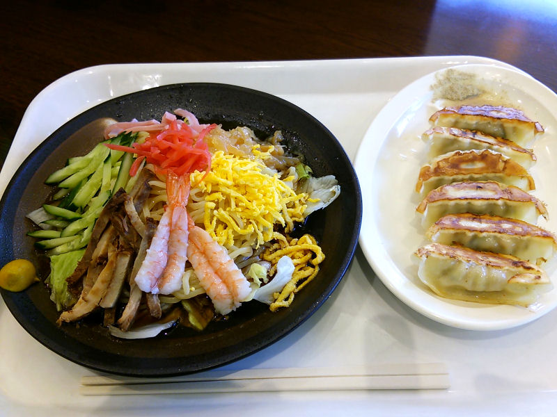 冷やし中華と餃子のセットにしました。さすがに、チャーハンも付けると多そうだったので、やめておきました。