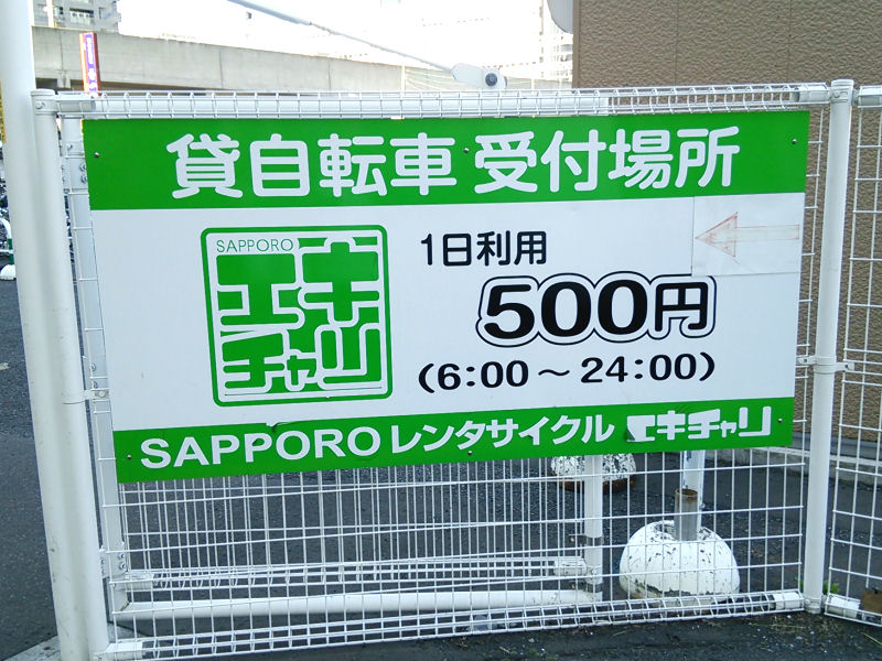 札幌駅すぐの場所にある「エキチャリ」にて1日500円で借りる事が出来ます。