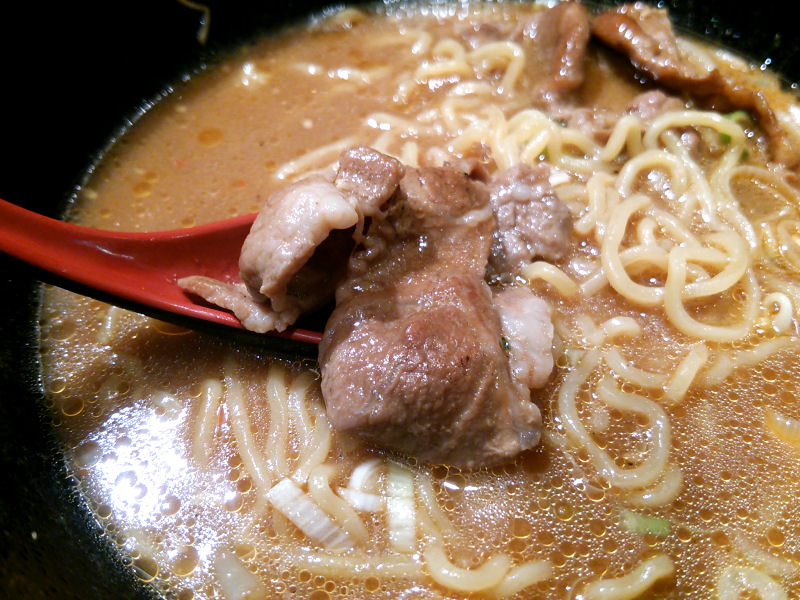 赤味噌のコクに、十勝風焼いたホエー豚がトッピングされています。