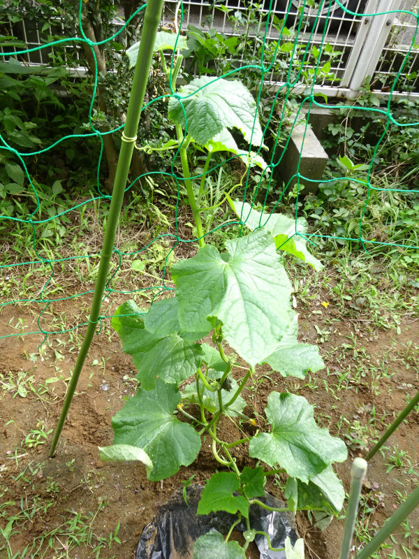 キュウリです。先週、やっとネットをはりました。実になる雌花も何個かついてますが、実がなるんでしょうか!?