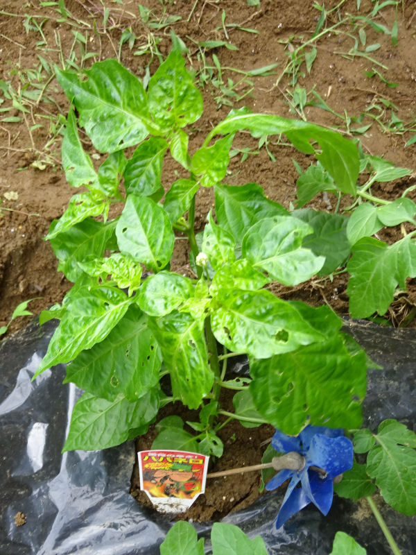 今年、試しに買ってみたのが、ハバネロ。ちゃんと育ってくれるかな!?葉っぱがかなり虫に食われちゃってるけど。