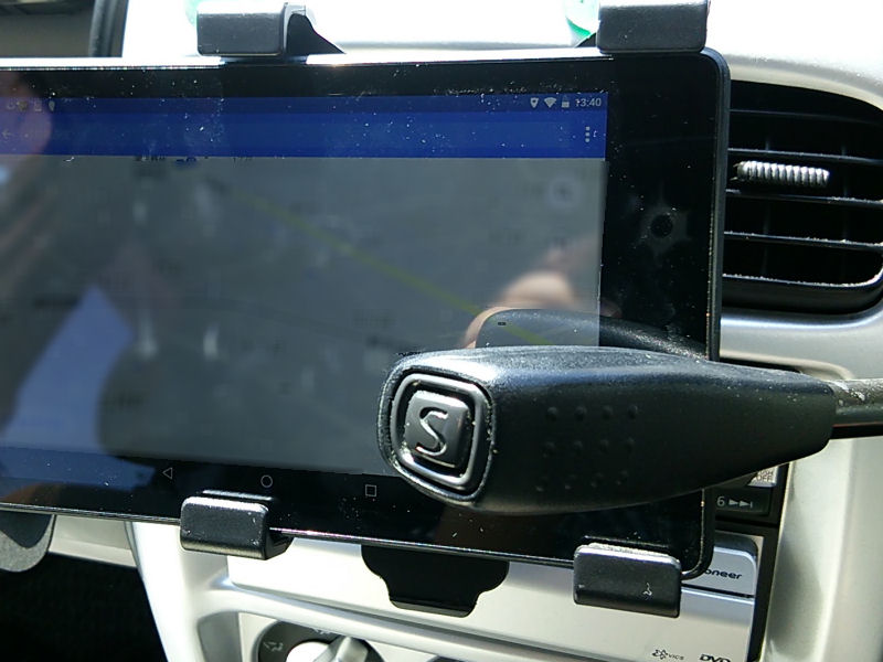 コラムセレクターをドライブの状態にするとタブレットに当ってしまうのです。それだけならまだしも、どう考えても見づらいですね。ナビと使用するには辛いものがあります。