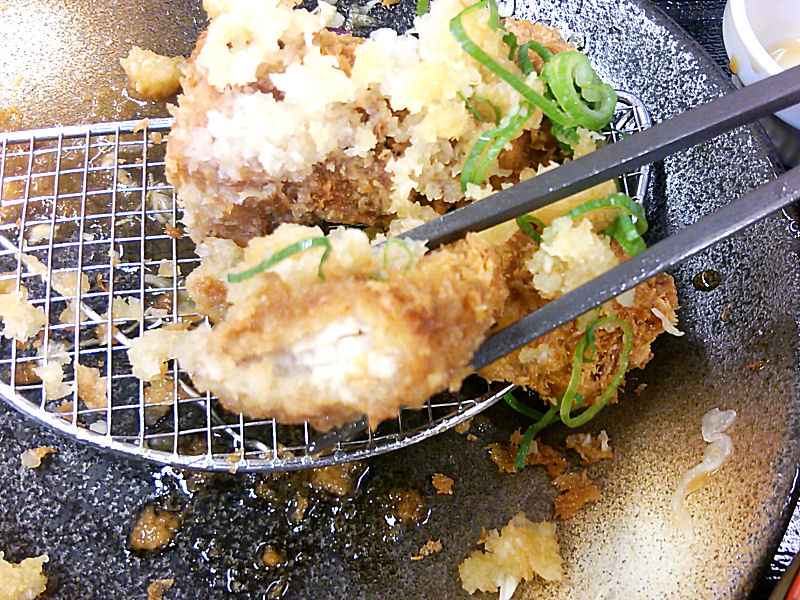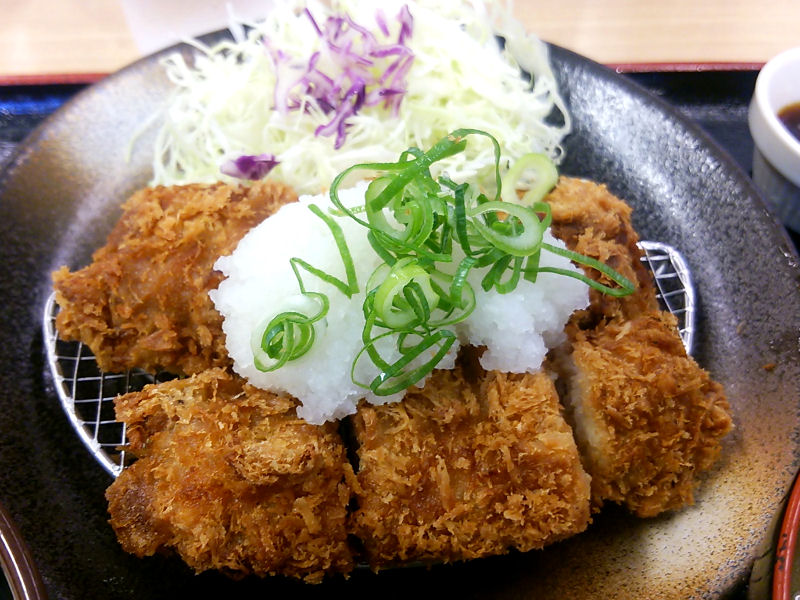 おろし豚バラ重ねかつです。かつ2枚分に大根おろしがどかっとのって、ネギを散らしています。