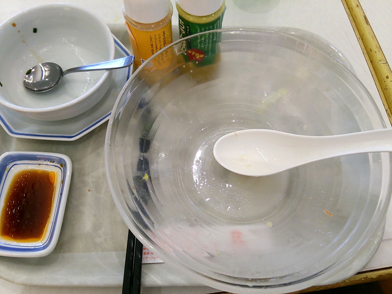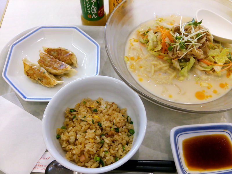 冷やしちゃんぽんの白に、ミニチャーハンと餃子3個セットにしました。ちょっと、多すぎですかね。