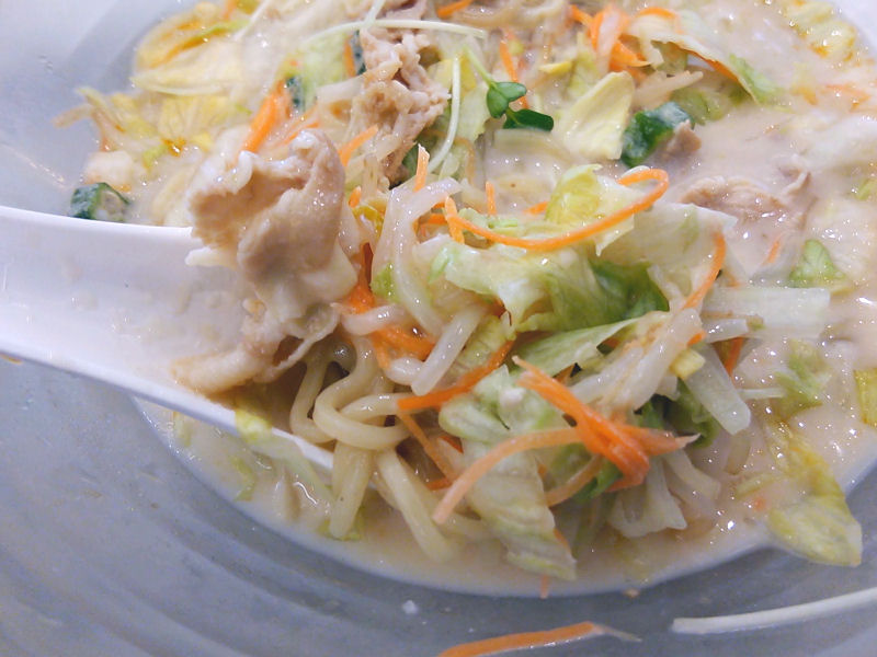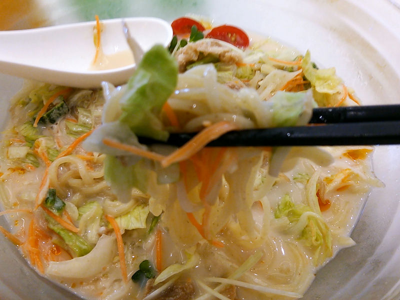 冷やしちゃんぽん、麺はこんな感じです。野菜たっぷり。赤よりも、さっぱりしてますね。