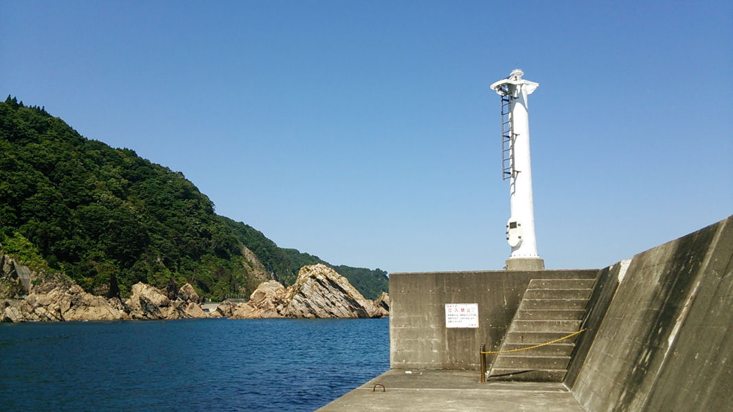 小袖港には、あまちゃんで度々出てきた、灯台があります。ドラマの中では、堤防の上をアキちゃんが走ったりするのですが、上には登れないようにロープが張られていました。