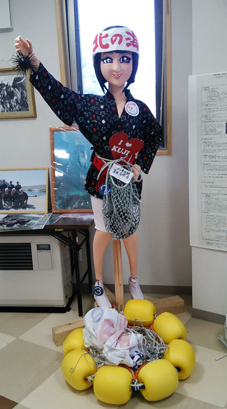 建物の中に入ると2Fには、北限の海女を紹介する展示コーナーがあります。最近、作られてたという北限の海女の萌えキャラがお出迎えです。