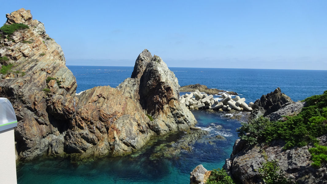 海女センターの前にあるのが、実演場となっている海への階段です。ここも、あまちゃんで登場した場所になりますね。この日は、海が非常に綺麗でした。