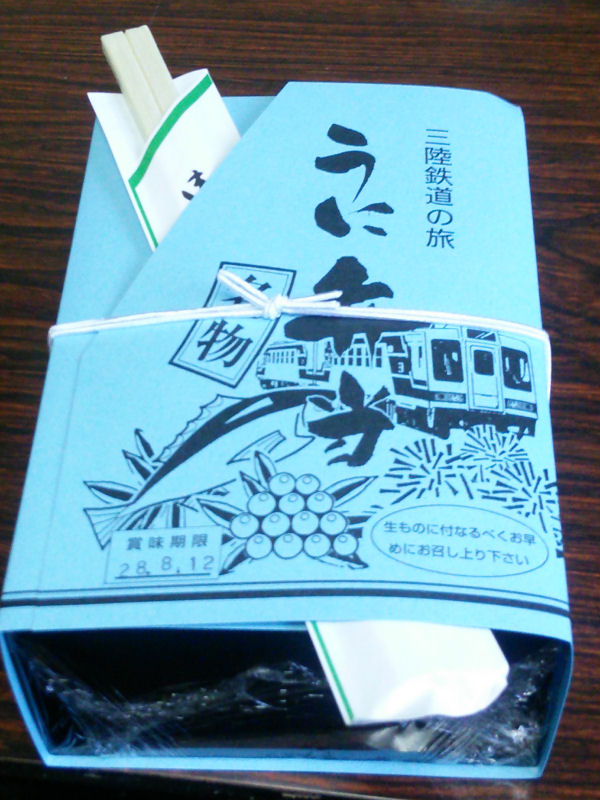 久慈・仙台旅行の2日目。早朝に早起きして購入できた、久慈駅構内にある、「三陸リアス亭」のうに弁当は夕食として食べました。