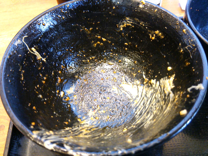 という事で完食しました。丼がかなり脂でテカってます。牛カルビのものもありますが、マヨネーズがかなりべったり残ってる感じですね。