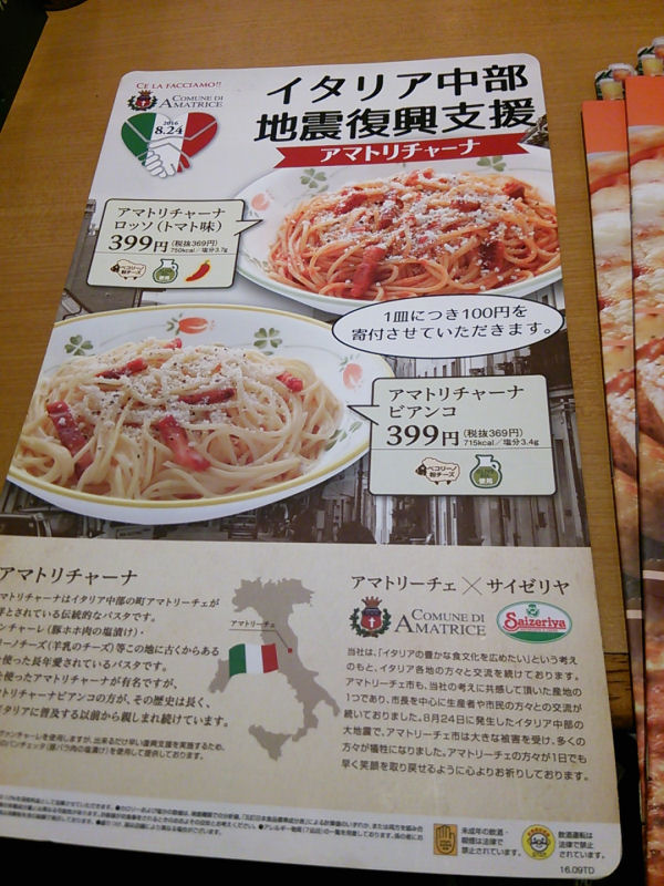 サイゼリヤのイタリア地震復興支援メニュー アマトリチャーナを食べてみた
