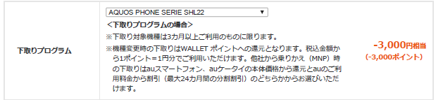 確かに、9月頃に支払いシュミレーションをしたときには、下取りプログラムの対象にSHL22が入っていたのです。これで、3000ポイント分を確保する予定でした。