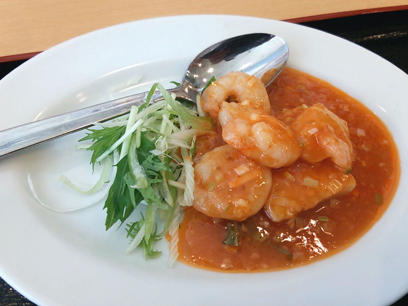 セットのエビチリです。イカも入ってます。それほど、量は多くはないですが、これだけで、ごはん1杯いけてしまいます。