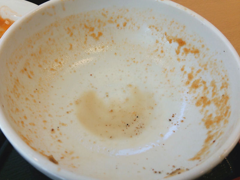 残り半分ほどになったところ。かなり、麺にスープが絡んでいます。たっぷりの胡麻が非常にいい。