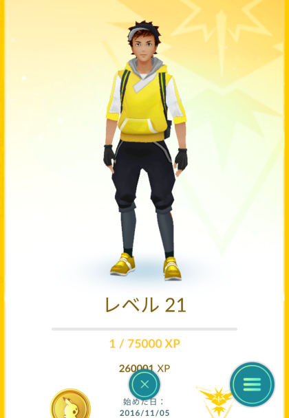 Pokémon GOは、レベル21になりました。この辺になってくると、レベル上げるのに時間がかかるようになってきました。