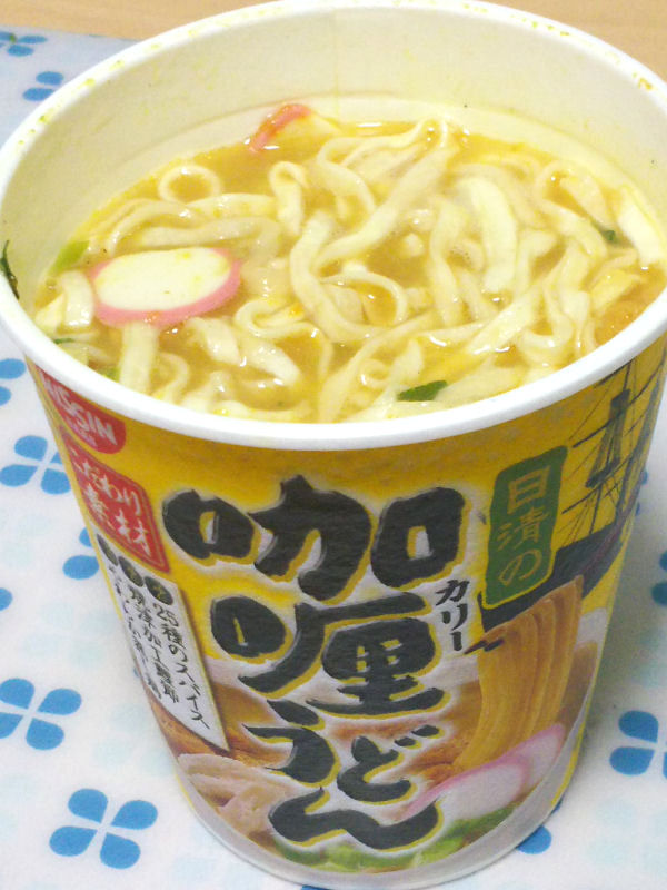 日清のカリーうどん。うどんだけど3分でOKなのが嬉しい。オープンプライスですが、イオンで100円ちょっとで買えました。