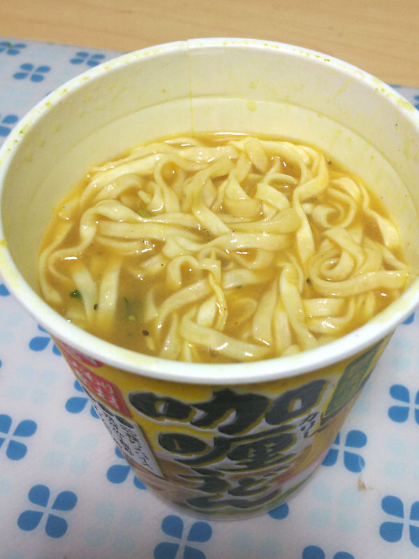3分経ちました。色味てきには、薄そうにも見えますが、クリーミーな感じなので見た目はそこまでカレーっぽさはありません。