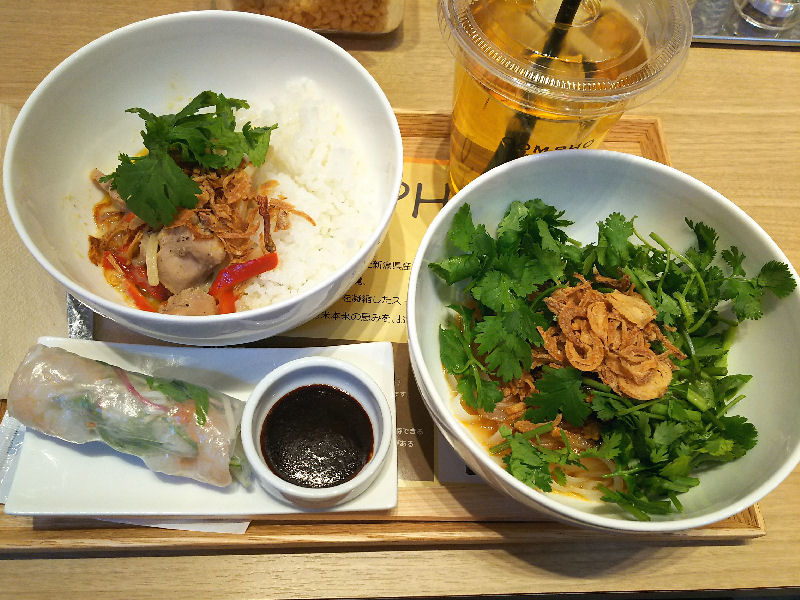 今回はセットメニューにしてみました。タイカレーと好きなフォーメニューを組み合わせ出来ます。期間限定メニューのパクチーまぜフォーを選んでみました。生春巻きとドリンクもセットで付いてきます。