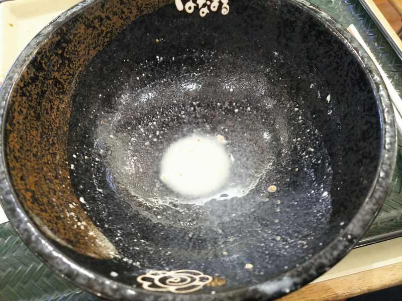 半分まで食べたところ。うどん小なので、少しスープが多めに感じます。スープが少なくなって、だんだんと辛味が強くなっていく感じがしました。