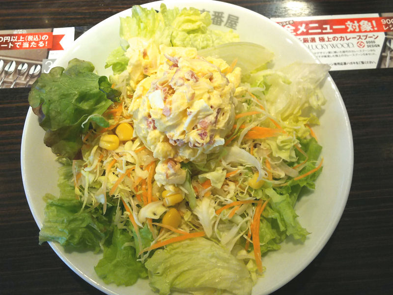 カレーの他に、サラダも注文するのが最近のパターン。2月末まで期間限定のマカロニタマゴサラダを再び食べてみました。マカロニと玉子にスモークベーコンの塩加減がいい。野菜もたっぷりのサラダです。