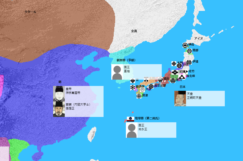 時代は進んで、1581年の東アジア。日本では織田信長が本能寺の変で亡くなる前年となります。織田信長が日本の中央を押さえて、まさに天下統一をはかろうという時代でした。この時期の朝鮮半島は、李氏朝鮮の時代であり、中国は明明でした。