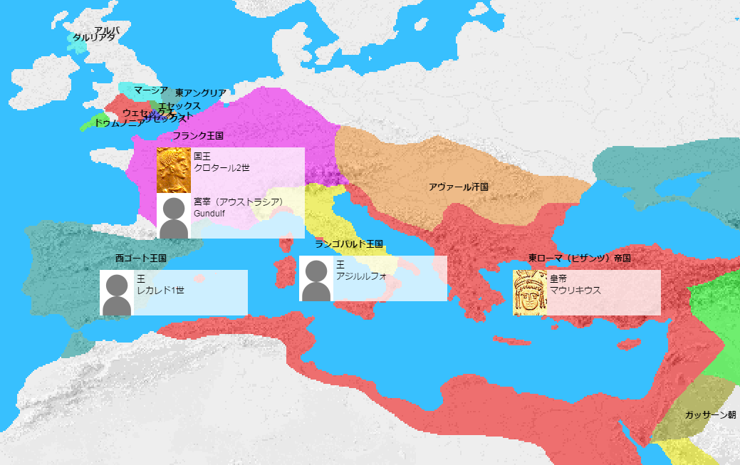 同じ時代のヨーロッパ。フランク王国があった時代で、東ローマ帝国があった頃でもあります。こうやって、同年代を比べてみるとなかなかおもしろいものがあります。