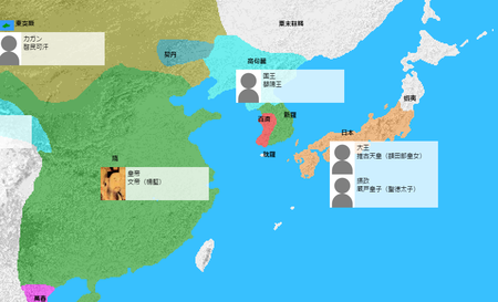 時代を一気に進んで、西暦600年。日本では、聖徳太子が生きていた時代。今だと厩戸王というのでしょうか。中国では唐の年代です。