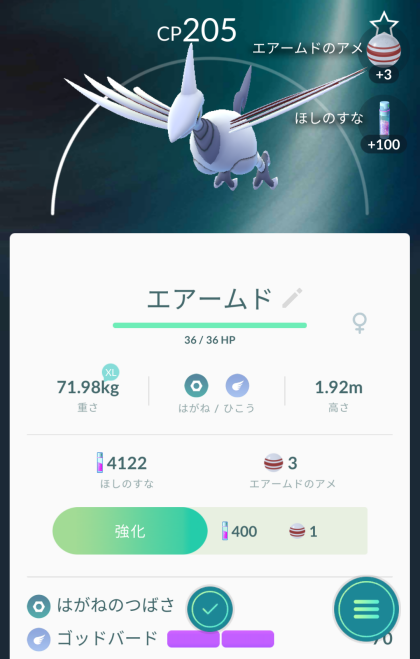 なんとも、無機質な感じのエアームド。結構、動き回るので手こずりました。