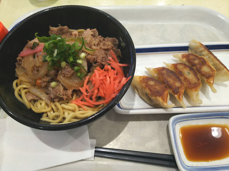 牛・がっつりまぜめんに餃子をセットにしました。ここのところ、半チャーハンと餃子3個のセットにする事が多かったのですが、餃子だけにしときました。