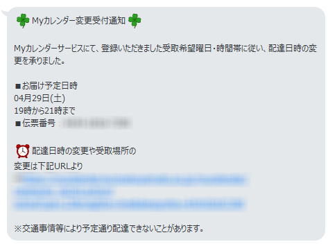 その後、あらためてMyカレンダーに登録した曜日の日時に変更するという通知が届きました。