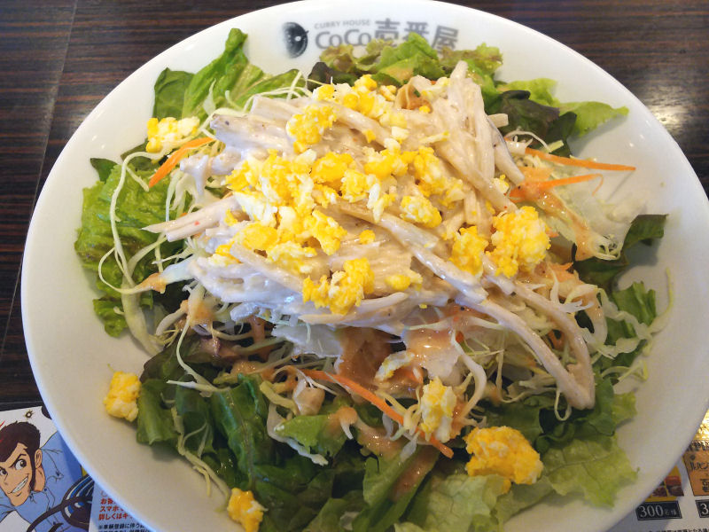 ささみカツカレーといっしょに注文したのが、ごぼうのミモザサラダ。ココイチのサラダは、なにげに量もあって美味しいんですよね。シャキシャキごぼうとほろほろ玉子で食感の違う具材がなかなか良かったです。