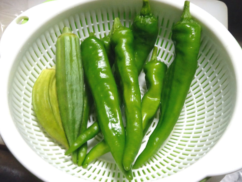 今年植えた、作物のうち順調なのは万願寺とうがらしとオクラくらい。枝豆は全滅してしまいました。ちょっと、肥料が多すぎたんでしょうかね。