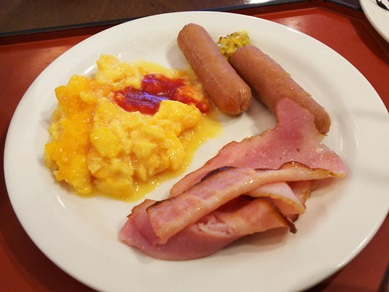 ソーセージ、ベーコン、スクランブルエッグ。これは、パンといっしょの方がよさそうでしたが、これでご飯もう1杯。パンも数種類あったんですが、あまり食べすぎるとお昼食べれなくなるのでやめました。