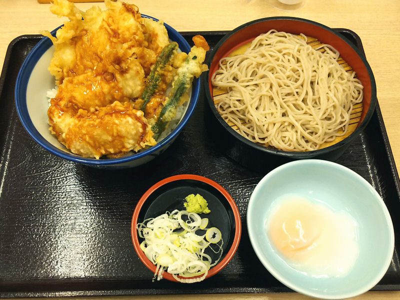 柚子こしょう天丼に小そばのセットにしました。温玉付きにしてみました。