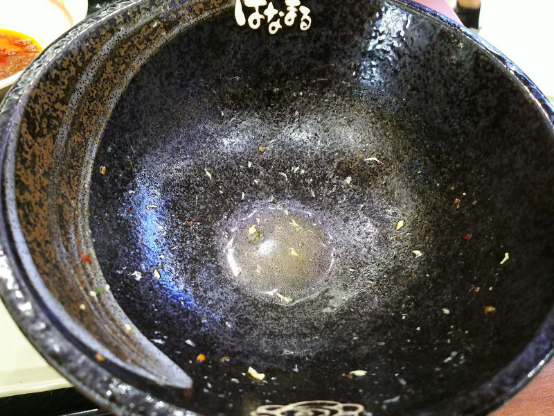 うどんだけ、残りわずかに。辛味はあるものの、酸味があって食べやすい。辛味調味料半分くらいなら、そこまで辛くはなかった気がします。