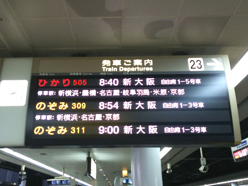 この日は、午前中雨の予報でしたが、朝方はまだ雨が降っていなかったので早めに出かけたため、ちょっと品川駅で暇を持て余してしまいました。しばらく待ってようやく新幹線に乗車です。